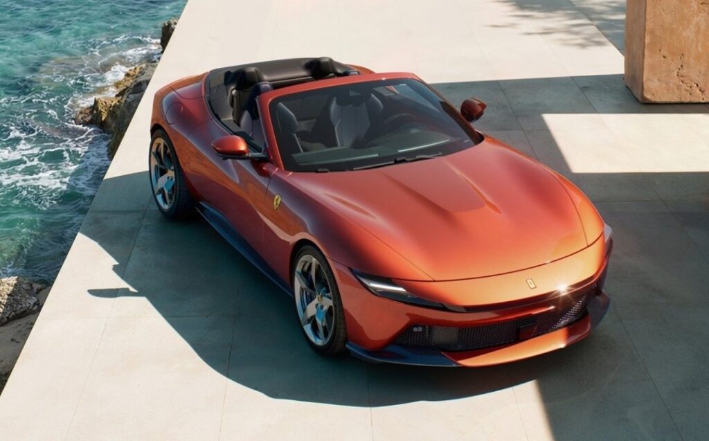 ボディカラーは新たに「アマルフィ スパイダー」を象徴し、沈みゆく太陽のあたたかな光を連想させる繊細なオレンジのアンダートーンを特徴とした「Rosso Tramont」を導入。フェラーリの赤のパレットをより豊かなものとした。