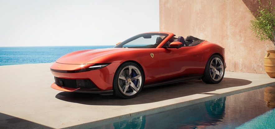 ボディカラーは新たに「アマルフィ スパイダー」を象徴し、沈みゆく太陽のあたたかな光を連想させる繊細なオレンジのアンダートーンを特徴とした「Rosso Tramont」を導入。フェラーリの赤のパレットをより豊かなものとした。