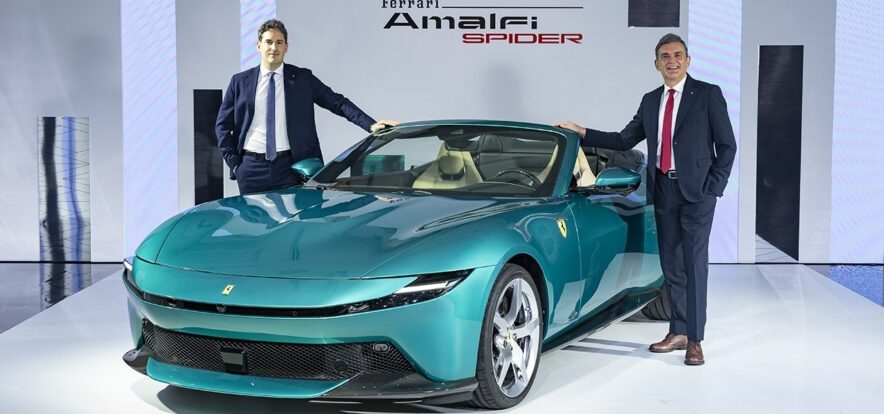 またフェラーリならではのピュアなパフォーマンスに加え、人生を楽しむ歓びやドライビングがもたらす感動とともに、デザインとライフスタイルの両方の魅力を求めるスポーツカー愛好家に向けたモデルとして「アマルフィ スパイダー」を紹介した。