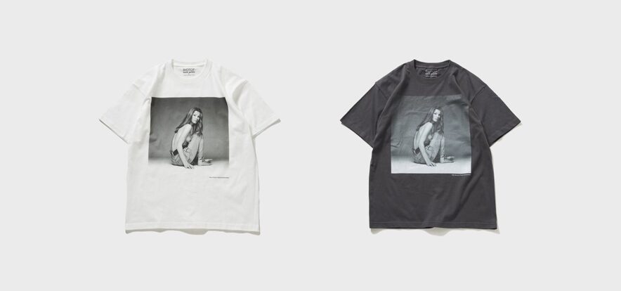 余白を纏ったモノクロのプリントには、言葉を必要としない静謐な力強さがある。ただそこに在るだけで、見る者の芯を揺さぶるケイト・モスという存在そのものが、このTシャツには宿っている。混沌とした時代だからこそ、ミニマルな一枚が持つ静かな確かさが、改めて際立つのではないだろうか。